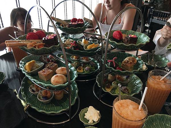 三層點心盤裡有甜有鹹,有很多都沒吃過的小點,